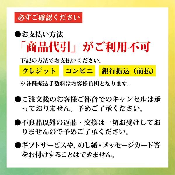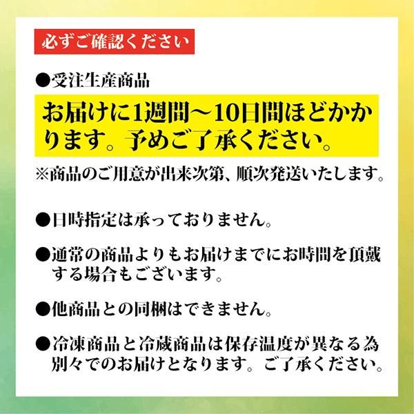 ※商品のご用意が出来次第、順次発送となります。※日時指定は承っておりません。 ※通常の商品よりもお届けまでにお時間を頂戴する場合もございます。※他商品との同梱は不可となります。※冷凍商品と冷蔵商品は保存温度が異なる為別々でのお届けとなります。ご了承ください。※代金引換でのお支払いは承っておりません。※ギフトサービスや、のし紙、メッセージカード等をお付けすることはできません。※ご注文確定後のキャンセルも一切お受けしておりませんので予めご了承ください。※不良品以外の返品・交換は一切お受けしておりませんので予めご了承ください。